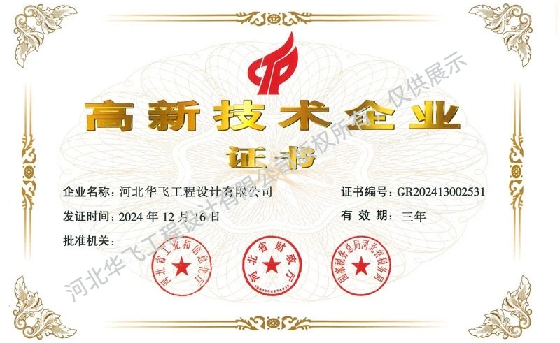 根據(jù)《高新技術(shù)企業(yè)認(rèn)定管理辦法》,河北省工業(yè)和信息化廳等多部門聯(lián)合公布了一批高新技術(shù)企業(yè)認(rèn)定名單,我司河北華飛工程設(shè)計有限公司(以下簡稱“華飛工程”)憑借雄厚的...